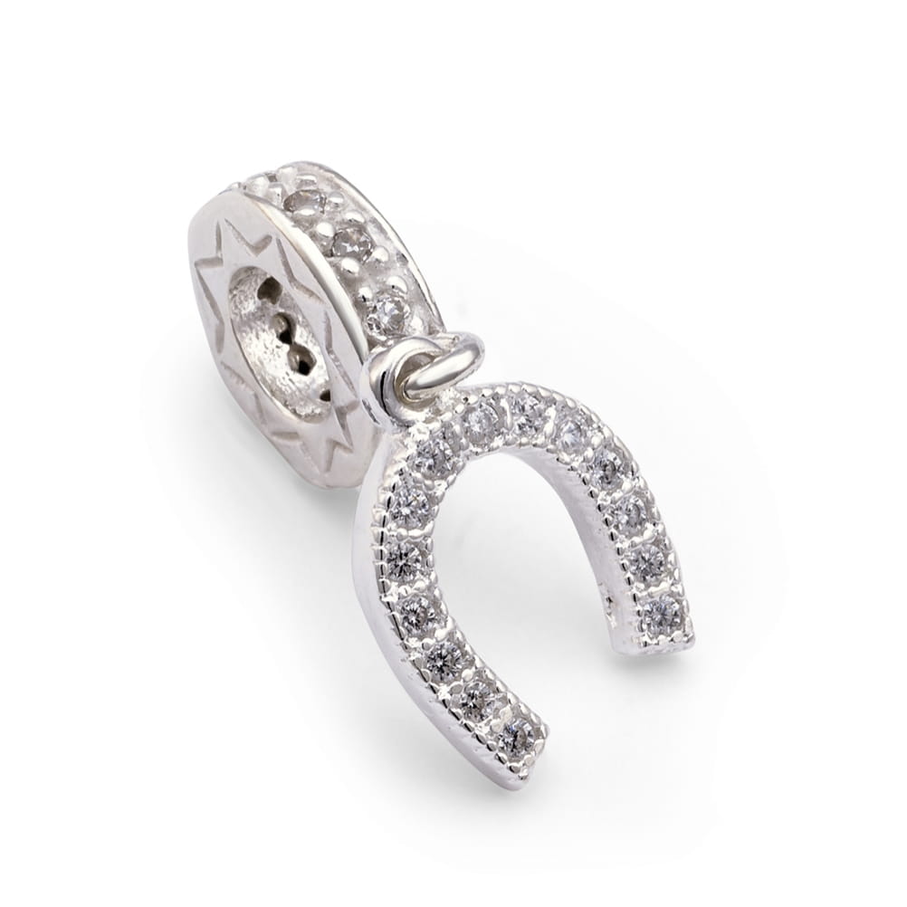 Berloque Ferradura Cravejada Grande em Prata 925 Legítima.