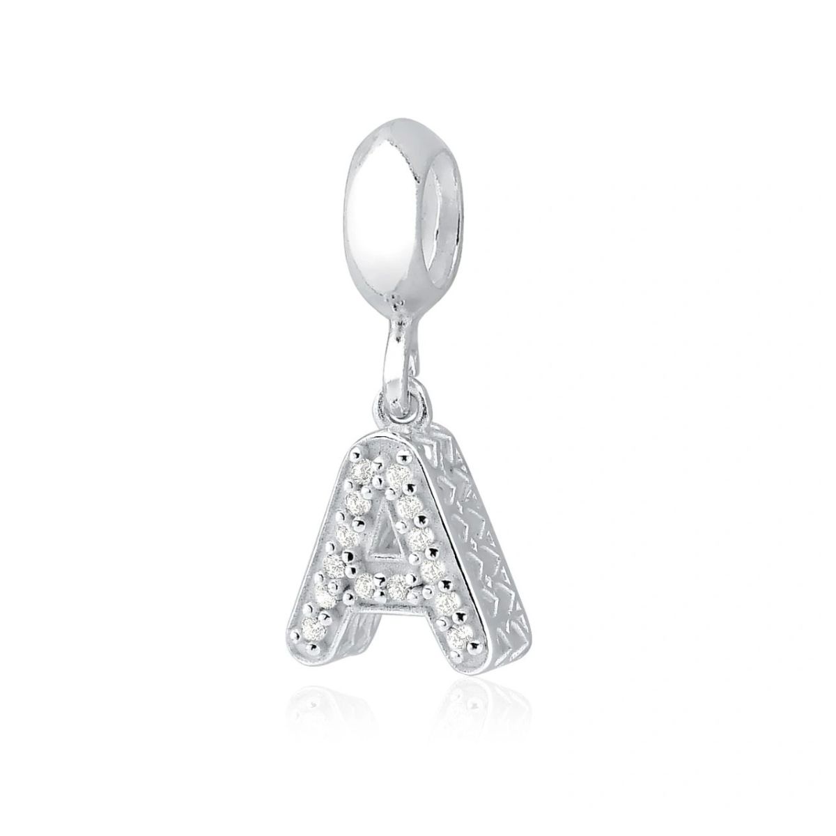 Berloque Letra Cravejada A em Prata 925 Legítima.