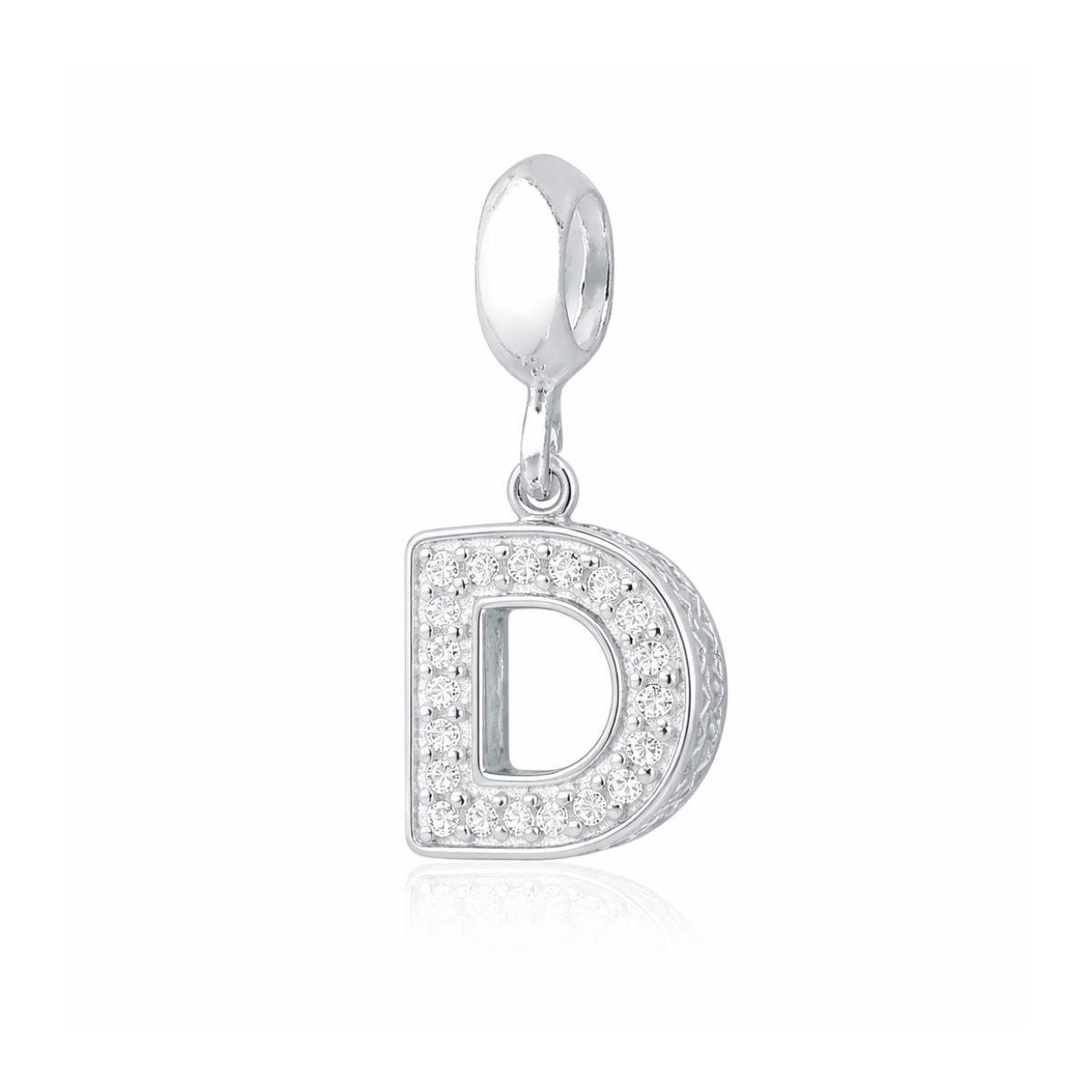 Berloque Letra Cravejada D em Prata 925 Legítima.