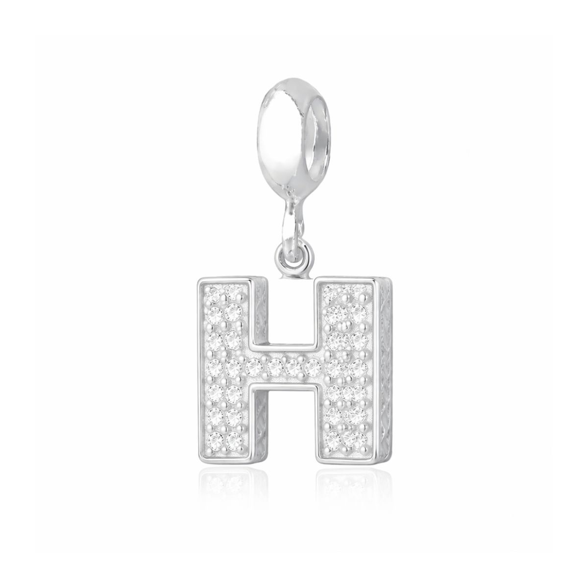 Berloque Letra Cravejada H em Prata 925 Legítima.