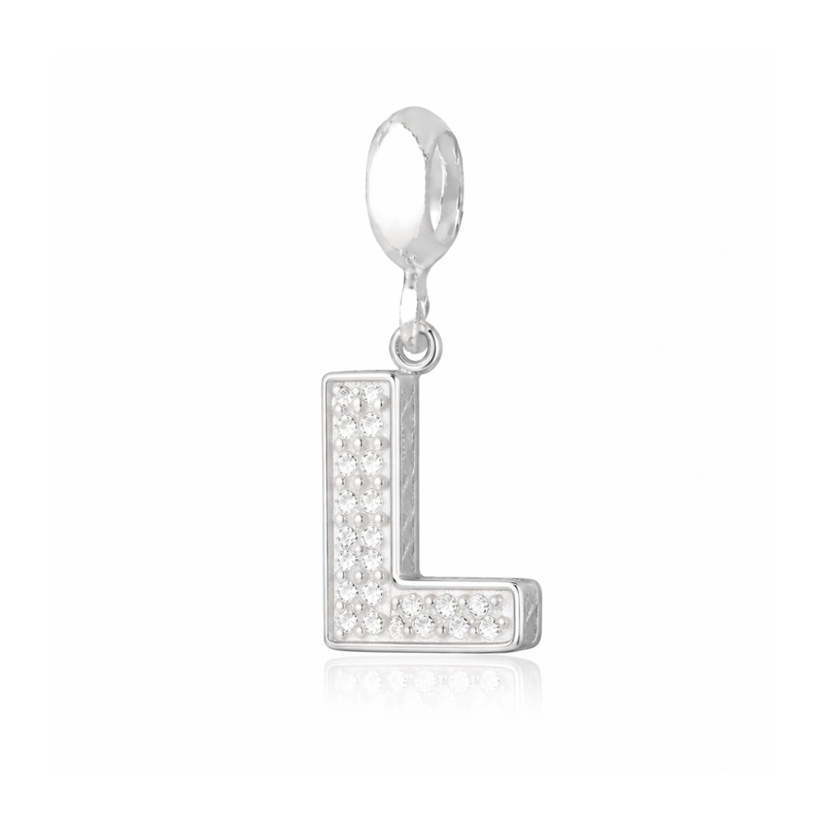 Berloque Letra Cravejada L em Prata 925 Legítima.