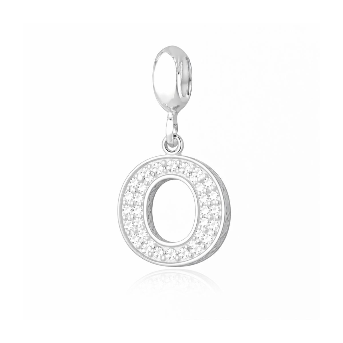 Berloque Letra Cravejada O em Prata 925 Legítima.