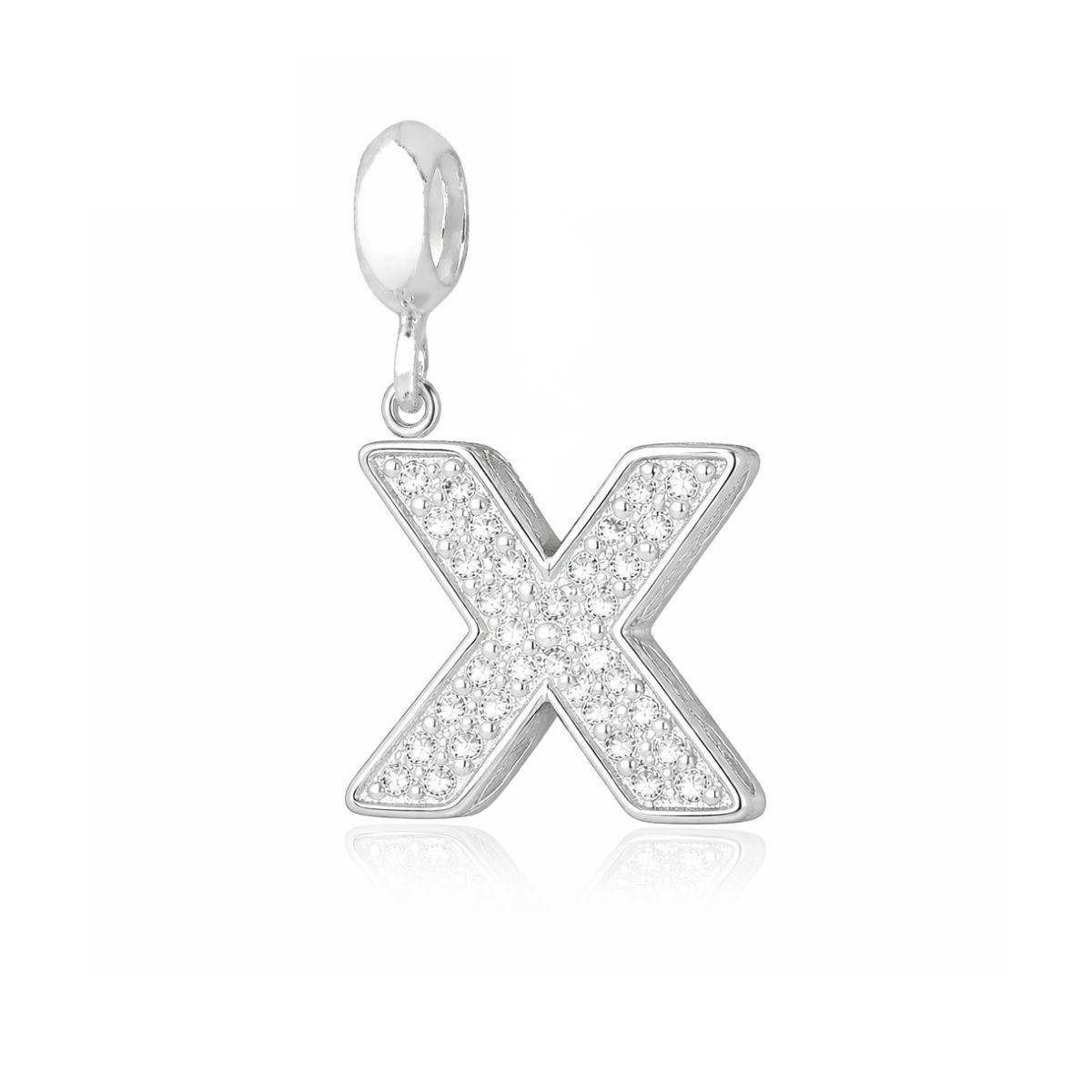 Berloque Letra Cravejada X em Prata 925 Legítima.