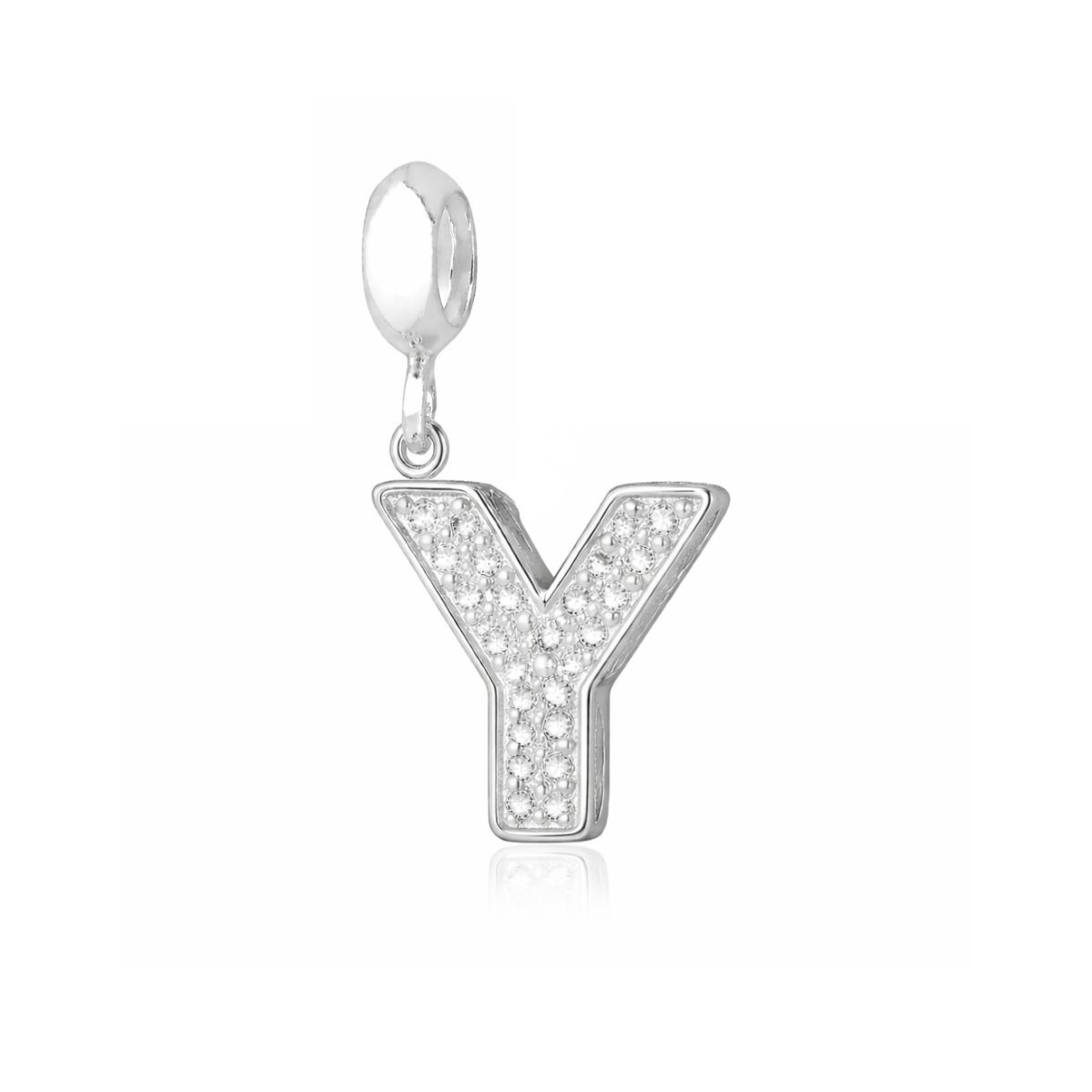 Berloque Letra Cravejada Y em Prata 925 Legítima.