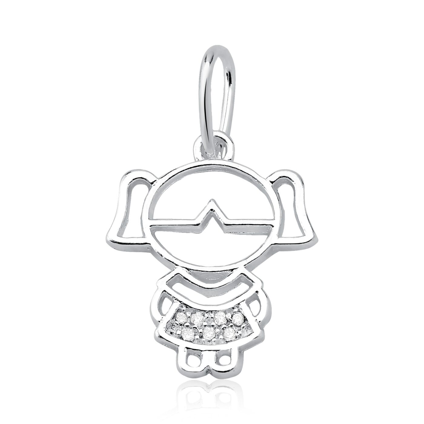Pingente Menina Vazada Cravejada em Prata 925 Legítima.